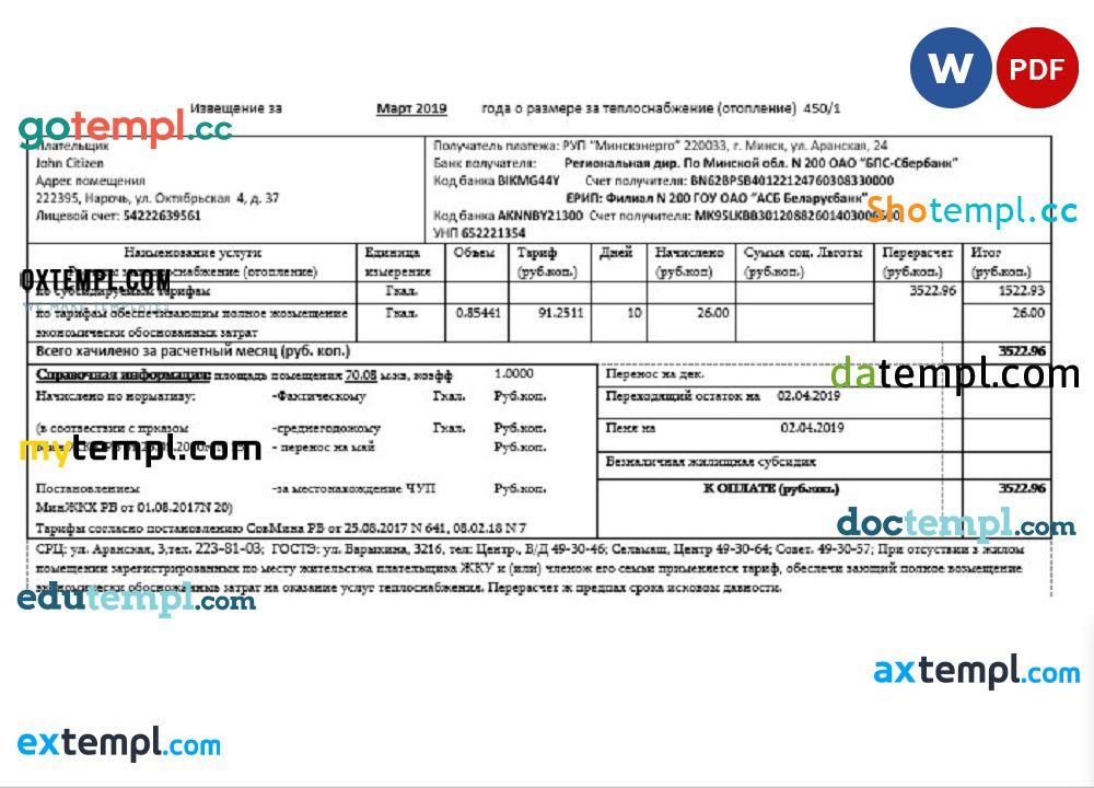 Completely editable Minsk energo utility bill of high quality, which is a proof of the available balance.