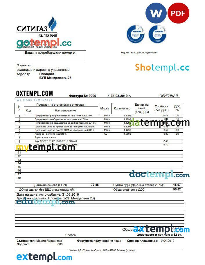 Completely editable Ситигаз gas utility bill of high quality, which is a proof of the available balance.