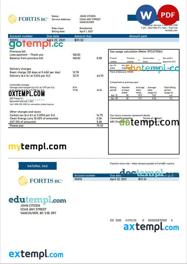 Like all our documents, Canadian Fortis utility bill template is of high quality.