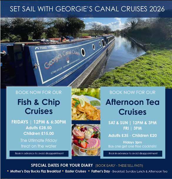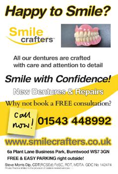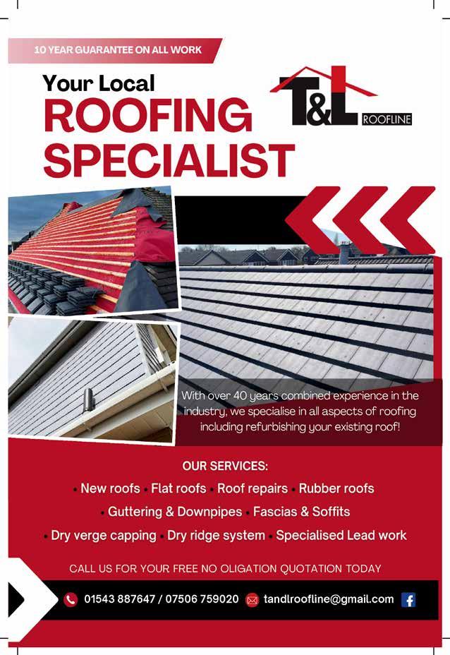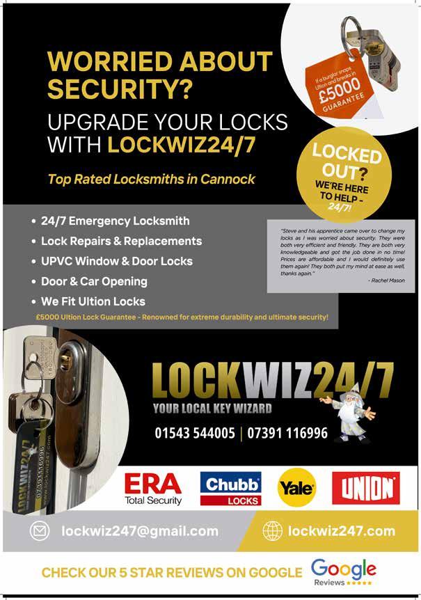 We gratefully acknowledge the support of businesses whose adverts appear in The Cannock Local magazine, and whilst every care is taken to ensure accuracy, the publishers cannot accept responsibilty for loss, damage or omission caused by error in the printing of an advert. All artwork is accepted on strict condition that permission has been given for use in this publication. Adverts are accepted on the understanding that descriptions of goods and services are fair and accurate. Any reproduction of any material is forbidden without the written consent of the publishers. The publishers cannot accept responsibilty for views expressed by contributors, or the accuracy of claims made by advertisers.