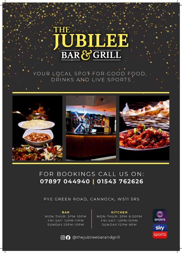 We gratefully acknowledge the support of businesses whose adverts appear in The Cannock Local magazine, and whilst every care is taken to ensure accuracy, the publishers cannot accept responsibilty for loss, damage or omission caused by error in the printing of an advert. All artwork is accepted on strict condition that permission has been given for use in this publication. Adverts are accepted on the understanding that descriptions of goods and services are fair and accurate. Any reproduction of any material is forbidden without the written consent of the publishers. The publishers cannot accept responsibilty for views expressed by contributors, or the accuracy of claims made by advertisers.