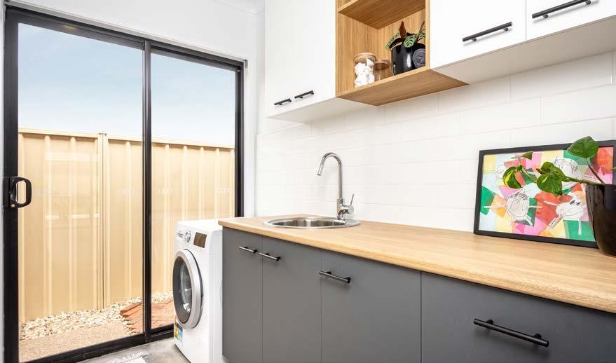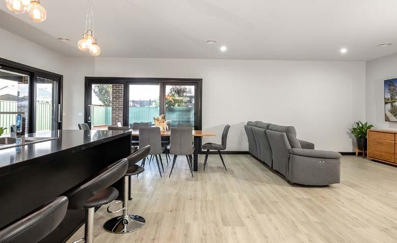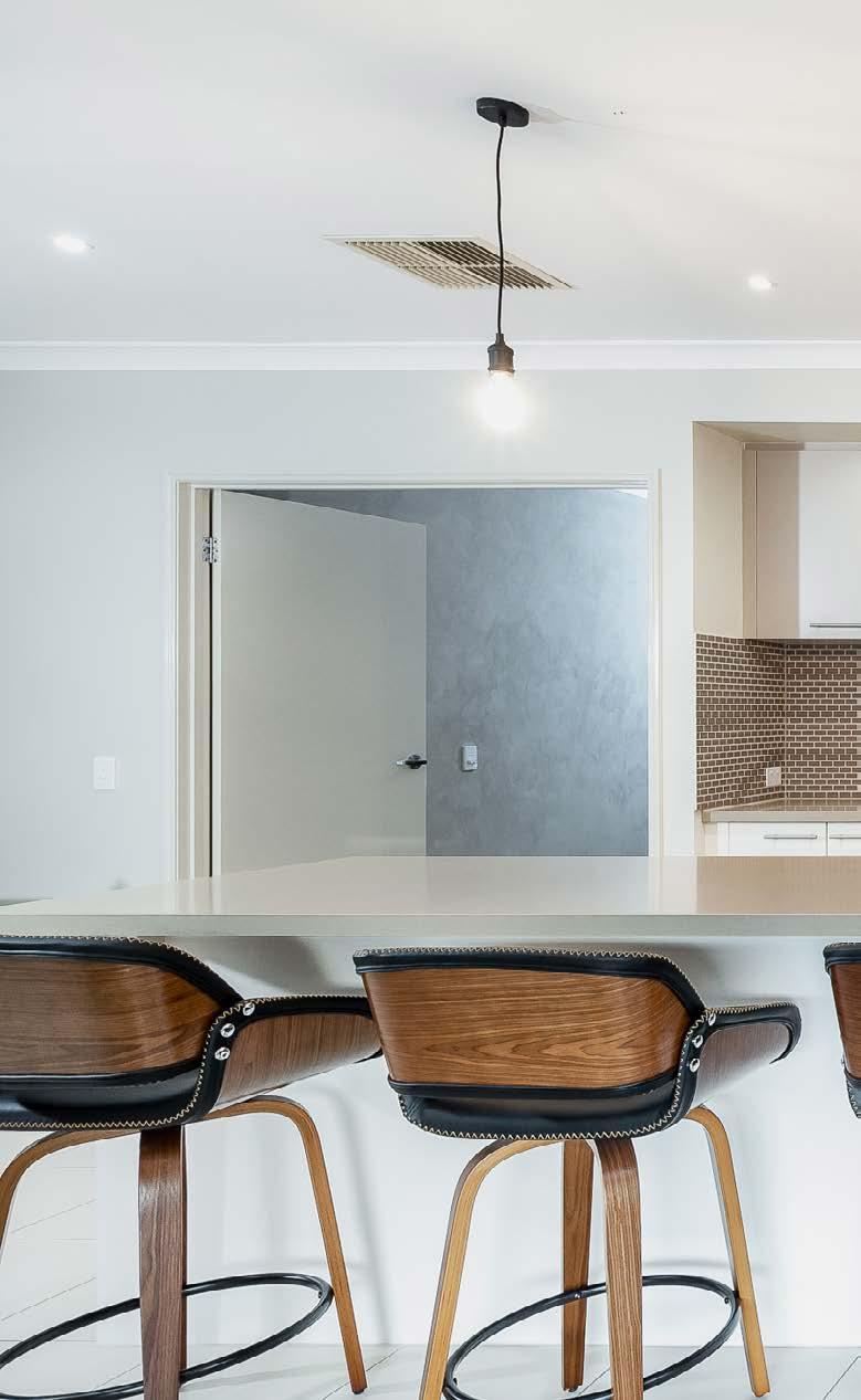 The framed façade welcomes you to the warm feel of this elegant Cavalier built home that presents as new with neutral tones throughout. The stylish wellequipped kitchen overlooks the open plan meals and living area and includes stone benchtop with waterfall edges and quality stainless steel appliances.