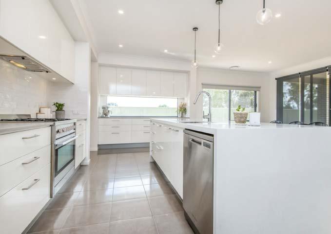 The stylish and light filled open plan kitchen, dining and living area is the heart of the home. The kitchen is equipped with waterfall stone benchtops, 900mm gas cooktop, stainless steel oven, dishwasher and large butlers pantry with ample cupboard space.