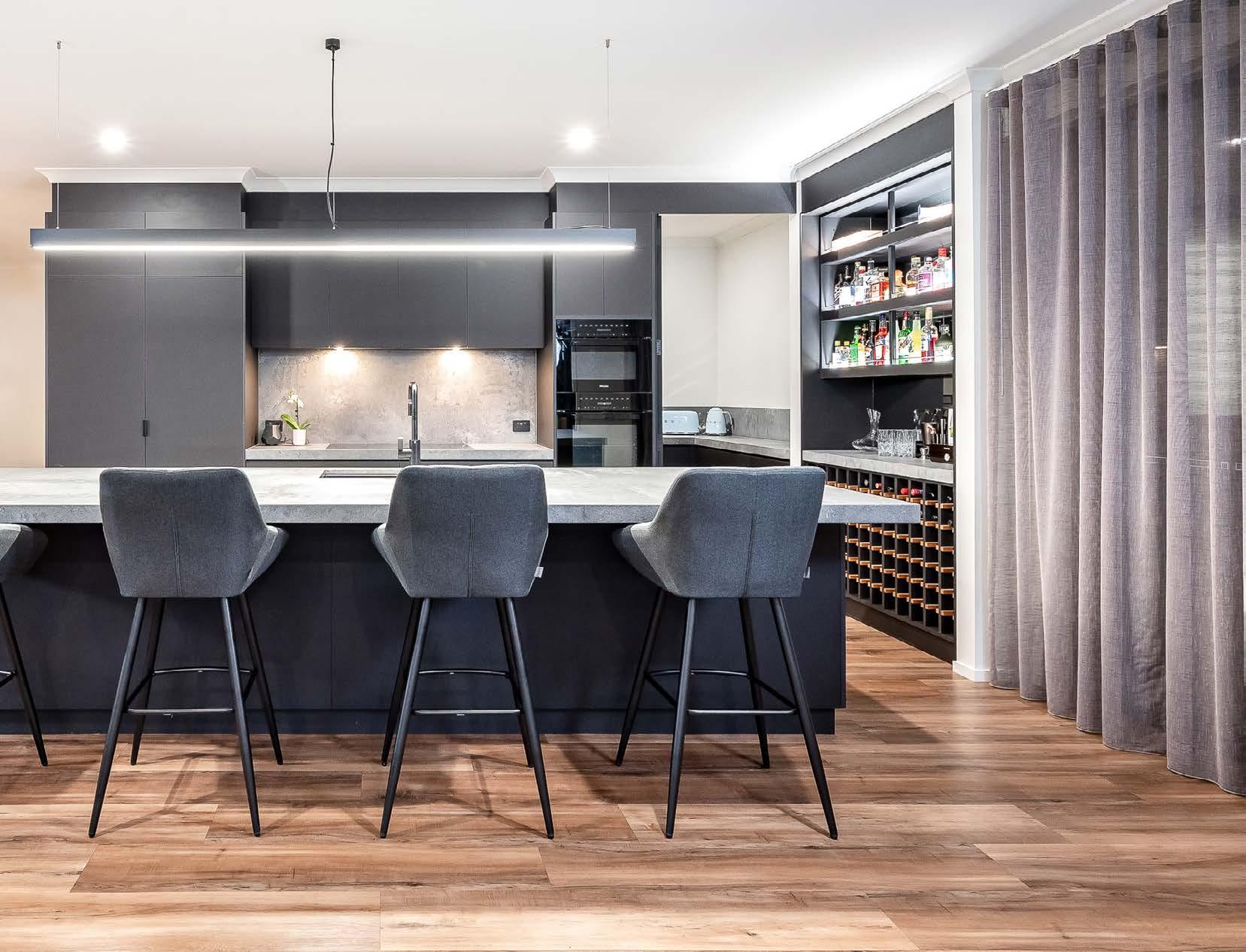 The entertainment concept includes a fabulous outdoor/indoor entertaining area that flows seamlessly to the inside of the home and is used all year round as a third but primary living area with inbuilt wood fire, 6 burner BBQ with fridge, ceiling fans and electric blinds.