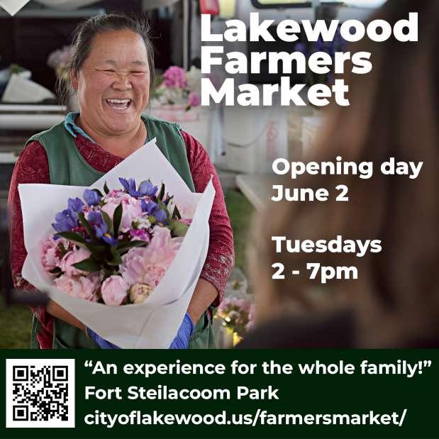 Tuesdays, 2-7pm, June-September Fort Steilacoom Park, Lakewood cityoflakewood.us/lakewood-farmersmarket