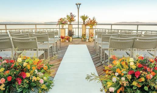 This venue features spectacular views of Commencement Bay as your wedding backdrop. Weddings can be hosted in the covered outdoor terrace — the perfect setting for a ceremony, celebration, or pre-reception venue. The 5,400 square-foot grand ballroom invites ample natural light with