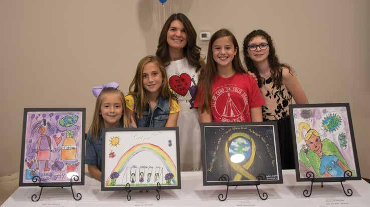 Campground Ministries’ inaugural event, “Night Around the Camp Fire,” took place this Fall to raise awareness about childhood cancer. The event involved children to encourage their active involvement. “We wanted students to experience the joy that you receive when you give of your time and talents to support and encourage someone else,” said Sarah. Thirteen pieces of student artwork were chosen for display and a community choir, made up of 37 students, performed. For more information about Campground Ministries, read In Search of Hope in this issue.