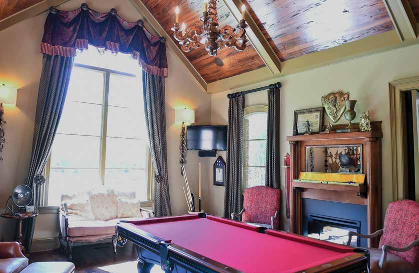 “The project began as a custom home that was to be built on one of the most spectacular lots in our community. The view across the lake is breathtaking, and it’s precisely where our work began. The homeowner’s land purchase along with their reclaimed, 12-foot-long dining room table served as my inspiration to create living and dining areas that took full advantage of the views,” explained Wilson.