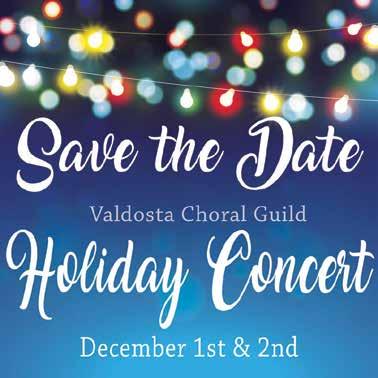 And in January, don’t forget to save the date for Valdosta Symphony Guild’s annual Tunes for Tots, Saturday morning, January 18, 2020. This is a unique opportunity for professional Valdosta Symphony Orchestra musicians to demonstrate a variety of instruments to children, and where children are welcome to try out the instruments themselves.