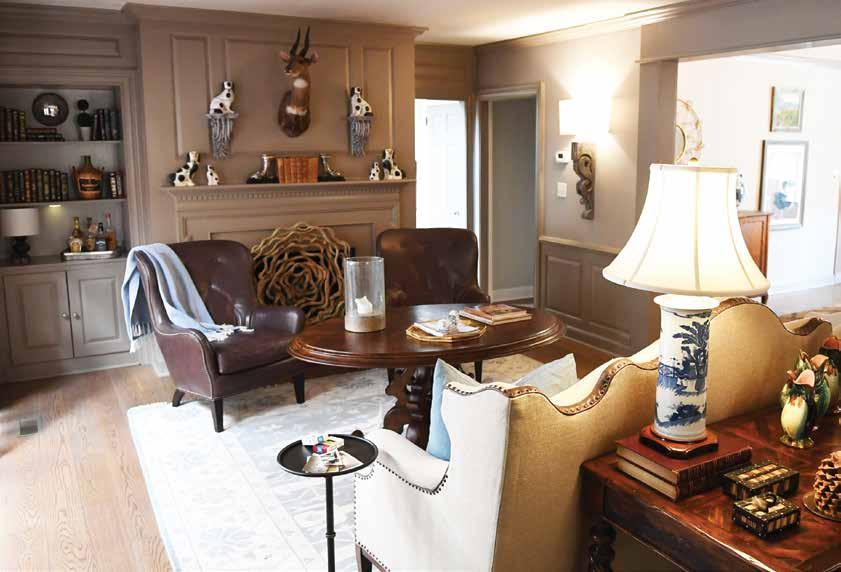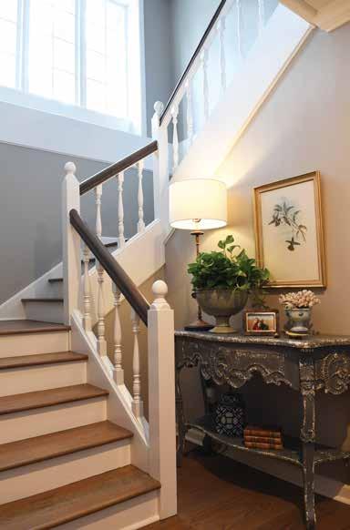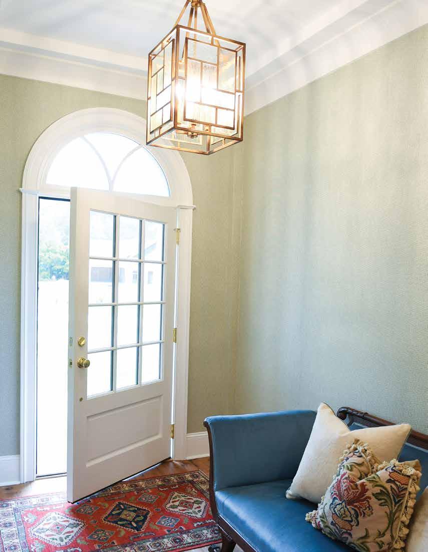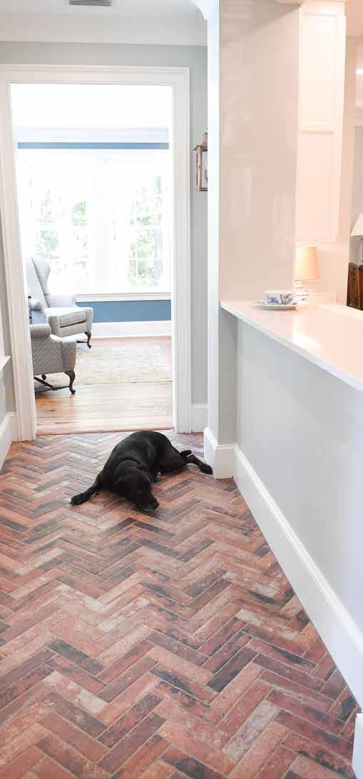 covers the stair risers, the herringboned-patterned brick in the back hallway, and the skylight in the master bathroom shower. But if Todd can claim responsibility for the overall home design, it’s Kelly, who gets the credit for the interior décor.