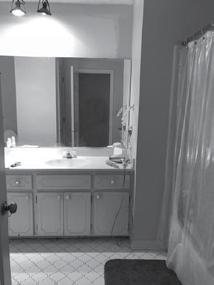 Extending the master bathroom into the bedroom a bit and installing a convenient pocket door for access from the bedroom created enough space for the homeowner to have a double vanity.