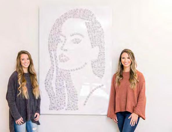 For Merriman’s o ce, they created a one-of-a-kind portrait of a woman’s face using empty Botox vials. The sta refers to the large sparkling portrait as “Ms. Fancy” and she has a prominent display space in the lobby. The class of 2022, as seniors, wanted to give a gift to commemorate their school’s history and new construction as they celebrated the grand opening this year. The Gandys built a big framework on which to mount the refl ective pieces they “broke” to create a unique mosaic design. Surrounding this legacy Viking in the center are the tools of construction hardware – nuts, bolts, and washers submerged in a transparent resin – integral in bringing the new LHS to its fruition. These striking, organic art pieces will endure.