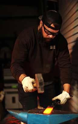 exhibits and competes in national knife shows where he has found a kindred community of craftsmen, enthusiasts, and collectors. He’s been able to network with other bladesmiths, meet experts in the industry, source suppliers, and showcase his work to potential clients, receiving valuable feedback while building his brand.