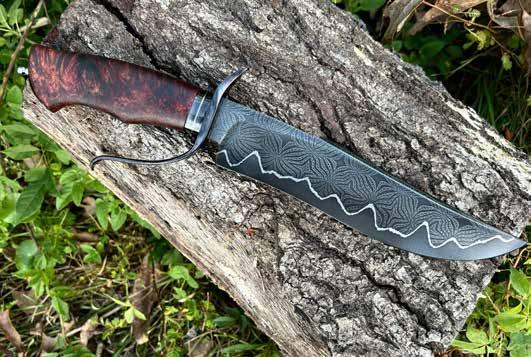 into [bladesmithing].” Adam, who has a degree in Industrial Management and has been employed at RYAM for many years, emphasizes that what he makes selling his knives has completely underwritten the expenses of bladesmithing and of building his custom knife business. When asked if he sees bladesmithing becoming a full-time gig, he smiles and says, “That’s the dream, man. That’s the dream.” |WM