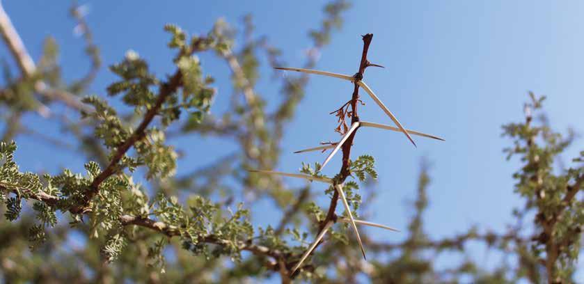 Thorns of an Acacia tree. This is the " crown of thorns" Jesus wore during the crucifixion, and it is also thought to be the wood used to make the Ark of the