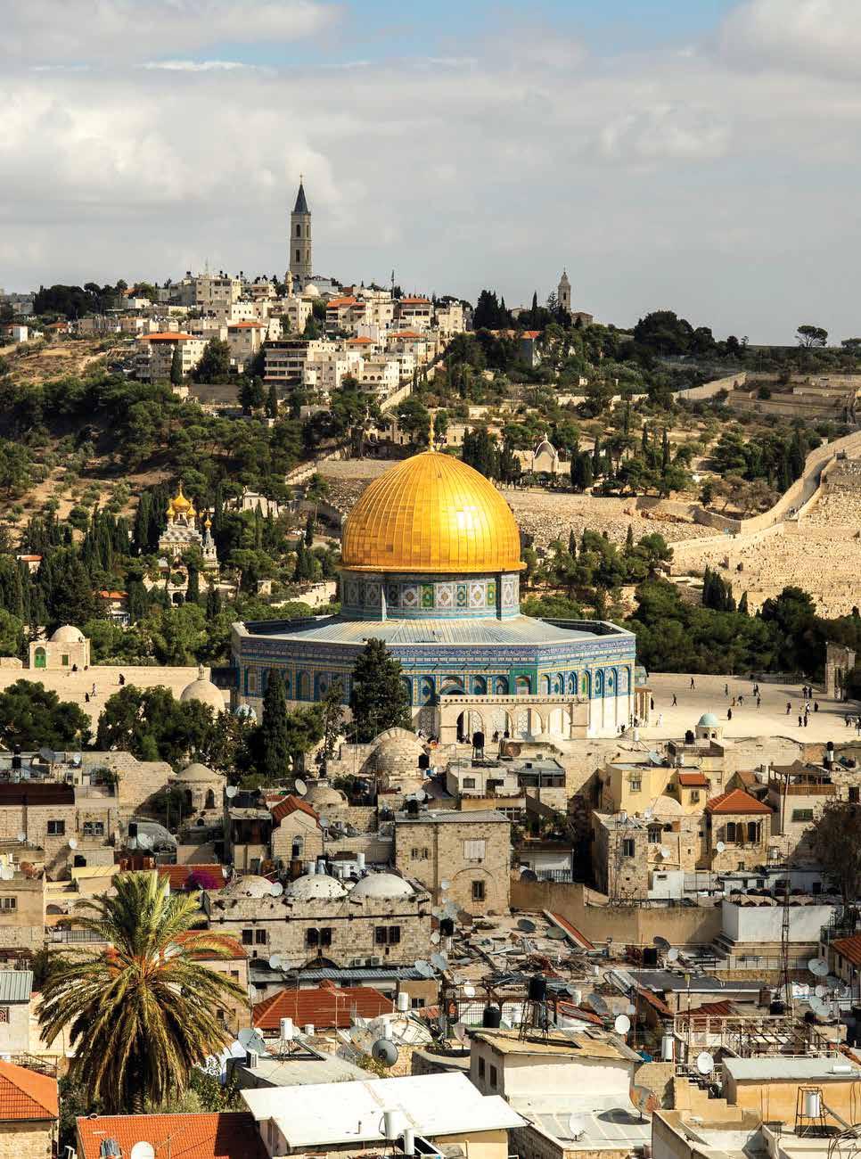 The Mount of Olives rises 250 feet above the Temple Mount, providing a great panoramic view of the old city of Jerusalem. The Mount of Olives is where Jesus and His disciples went after the Last Supper. The Garden of Gethsemane is also located at the foot of this mount.