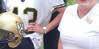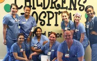 Above: Hanna is shown here with the office staff at Bone and Joint Institute. Below: Shown here with her nursing clinical group. Hanna wore a scrub cap to hide her bald head so as not to scare the patients in the Children’ Hospital. Bottom Left: Melanie Hollingsworth Harris and Hanna on surgery day. Bottom Right: Team Hanna’s Hooters at an American Cancer Society fundraiser in Savannah, Hanna with WSAVs Tina Tyus Shaw.