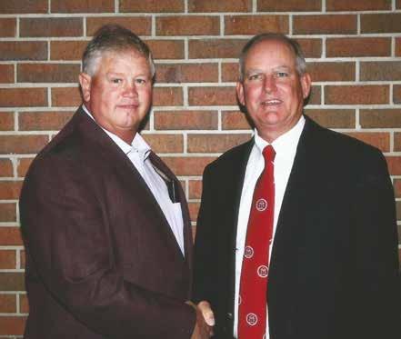Kent Fountain, of Southeaster Gin & Peanut, passed the gavel and responsibilities as Chair of the Wayne Chamber to Joy Burch Meeks, of FMR Burch Farms.