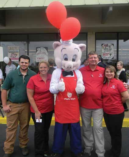 Cole Thompson, son of Missy and Ashley, Missy Thompson, Piggly Wiggly mascot, Ashley Thompson, Jodi Ammons.