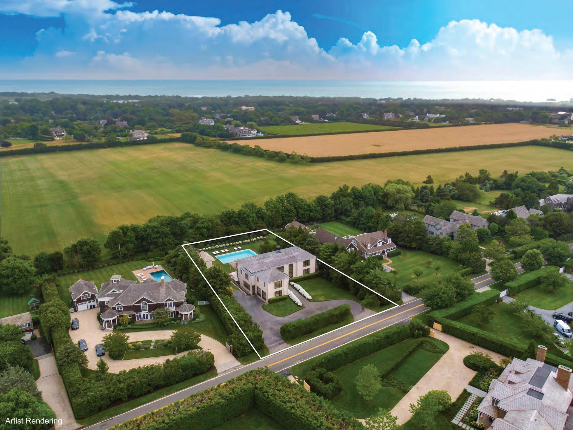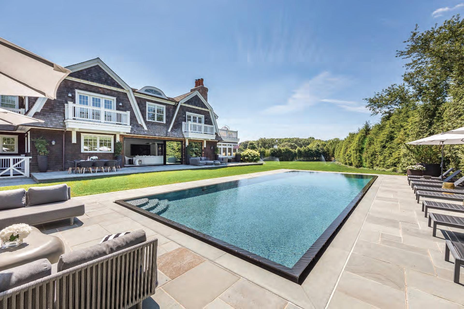 Stunning stone and cedar shingle-style house bordering a 20 acre reserve. Nearly 12,000 SF of living space on 3 finished levels. Custom details are throughout this home which features rooms which face south and boast dramatic views of open fields and The Atlantic Golf Club. Arrive through the stunning main entrance to experience the first floor with a great room, stone fireplace, dining room, large open kitchen all opening to the large stone terrace, library/media room with fireplace, guest suite, and family room with fireplace with access to the terrace and pool area. The second floor covers over 3,600 SF and features a large primary suite with an adjoining private office, 4 guest suites. The lower level comprises some 4,400 SF and includes a gym, golf simulator, billiards room, entertainment area, and playroom. The swimming pool is 50’ long and beautifully positioned on the property. Private viewings available by appointment. $9,800,000 WEB# 900515
