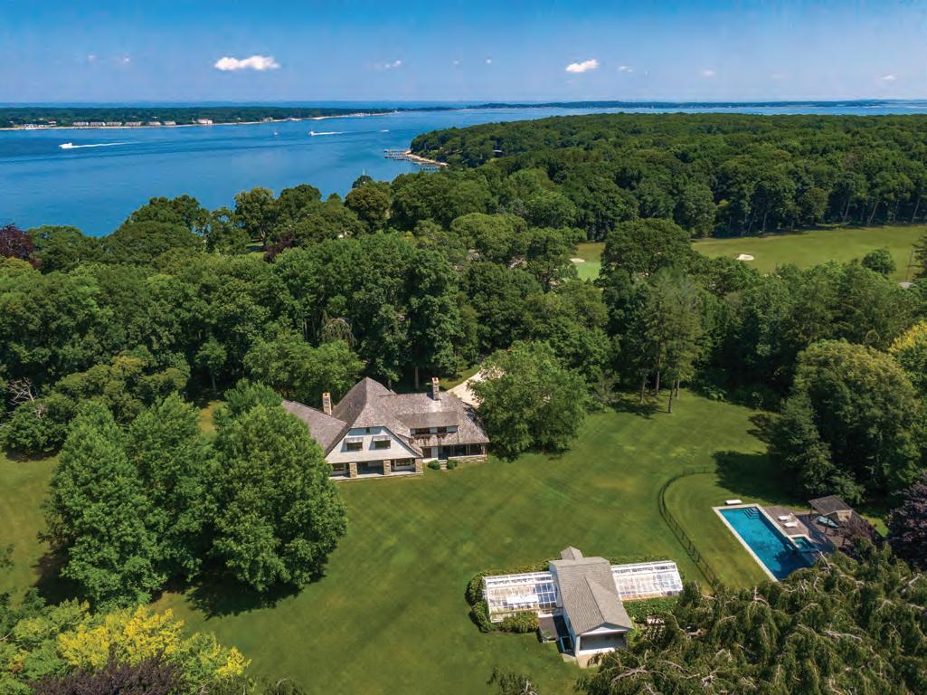 Shelter Island . The charming 200-acre, seaside Village of Dering Harbor with just 35 homes has been dubbed “The Smallest Village in New York”. And in the heart of this quaint Village is Oriole Farm which, once the private arboretum and gardens of famed horticulturist Alice Fiske, is now home to a new Shelter Island in a privileged setting. The sprawling, six park-like acre estate is a brilliant collaboration between Barnes Coy Architects and Edmund D Hollander Landscape Design. The intriguing stone and stucco residence incorporates 7,000+ square feet of finely articulated living space on three levels. The two-story entry hall leads to the living room under beamed ceilings with beautifully finished white oak flooring, a fireplace and intimate dining alcove. The chef’s kitchen, equipped with Viking and other professional appliances, statuary marble countertops, center island seating and a breakfast table overlooking the grounds. opens to its own family room with fireplace. The ground floor master suite offers a large sleeping chamber with cathedral ceilings, dual walk-in closets and a spa-like French limestone bathroom with steam shower. Adjacent to the master suite is a paneled library/ office with fireplace and private terrace. Four additional bedroom suites, one with a sleeping porch, an office, and a laundry room await on the second floor. The finished lower level offers a media room with a fireplace, gym, playroom, wine room, laundry room, and a full bath with steam shower. Multiple covered terraces adorn the outside of the house highlighted by a large, covered porch with fireplace, all overlooking the manicured lawns and lush plantings. The 55-ft Gunite pool & spa with pergola sits next to an enchanting Lord & Burnham greenhouse, used as a pool cabana and dining atrium, all braced by an allee of 100-year-old weeping beech trees and specimen plantings. Privacy is absolute and assured by over a quarter mile of 80-year-old beech hedge. There is ample room for tennis and the detached 3 car garage could be finished to provide additional living space. The home boasts energy efficient state of the art geothermal heating and air conditioning with a redundant traditional boiler system. An ambitious new owner might inquire about the opportunity to own an additional 8 acres of contiguous property. This sublime property sits across the street from Gardiner’s Bay Country Club and is within easy walking distance to beaches and the quaint waterfront commercial district with its multiple shops and restaurants. With easy access to both the North and South Forks as well as proximity to the shops and various restaurants that dot the 29 square mile island oasis, this singular new offering deserves your attention today. Exclusive. $5.95M WEB# 892822
