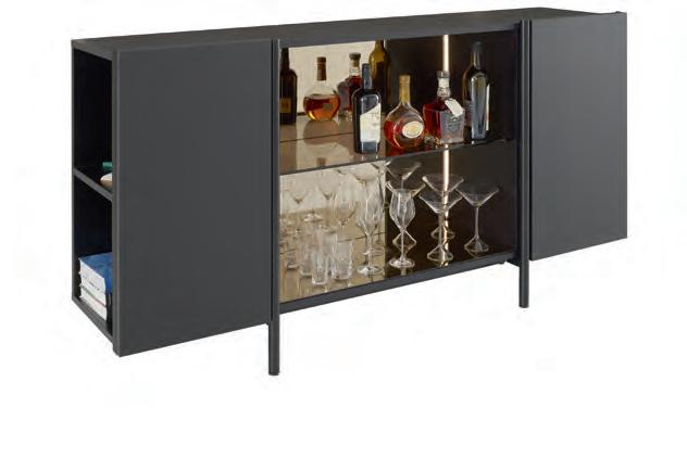 The Janus bar cabinet designed by Sebastian Herkner shows off bar ware against a mirrored background when doors are open. Close the doors for a functional storage cabinet. From $4,030 ligneroset.com