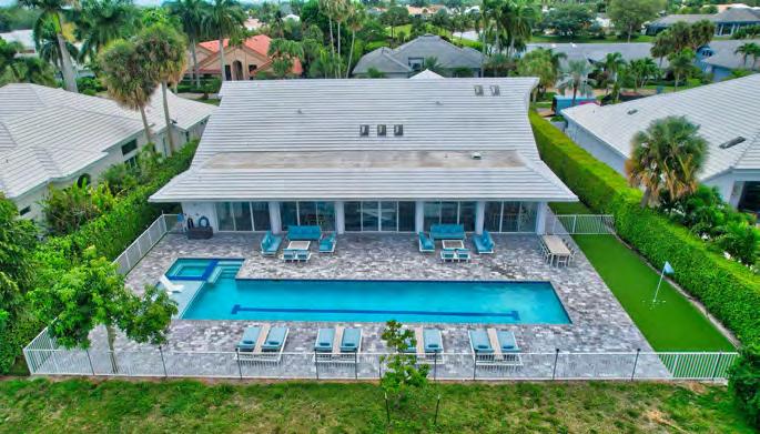 This home is 5,255 square feet under air plus 5,000 square feet of outdoor entertaining space, 4 bedrooms, 5.5 baths with 2-car and golf cart garage nestled in Bocaire Country Club in Boca Raton, Florida.