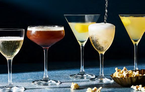 Aspiring home bartenders need some basic equipment to make sophisticated cocktails: shaker, strainer, jigger, mixing glass, cocktail stirring spoon, ice bucket, tongs and beautiful glassware.