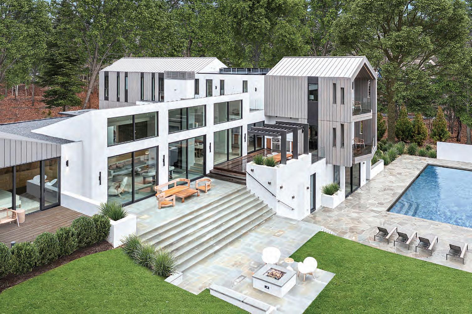 $5,995,000 | Completed 2023 | 0.51± Acre | 6,421± sf 6 BR | 6 Full, 2 Half BA | Open Post and Beam Construction | Floor-to-Ceiling Masonry Fireplace Heated Gunite Pool | 2-Car Garage 58CoveHollowRd.com