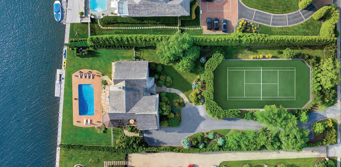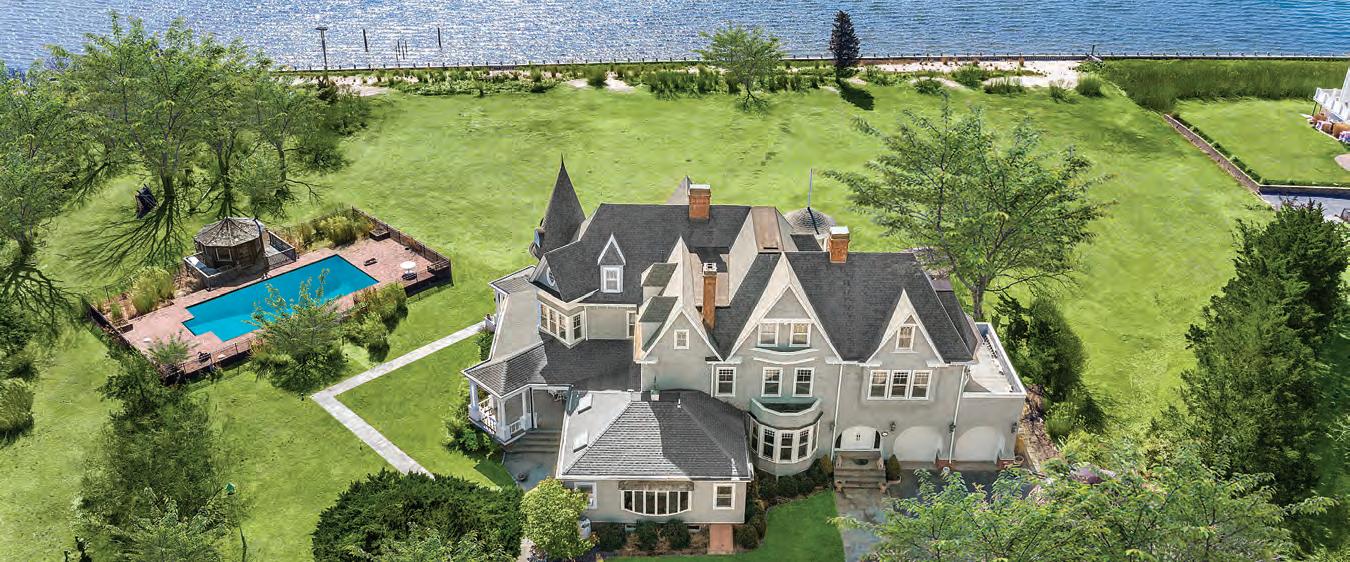 8 BEDROOMS | 6.5 BATHS | OFFERED AT $25,000,000 217ROSEHILLROAD.COM Sited on an original bay front estate on world-class Rose Hill Road, this 5± acre property, with potential for subdivion, offers 330± feet of direct waterfront with dock. Built circa 1920s this elegant, Georgian-style, red-brick “country house” was designed by Goodwillie and Moran, architects credited with many fine residences in New York and New Jersey in the 1910s and 20s.