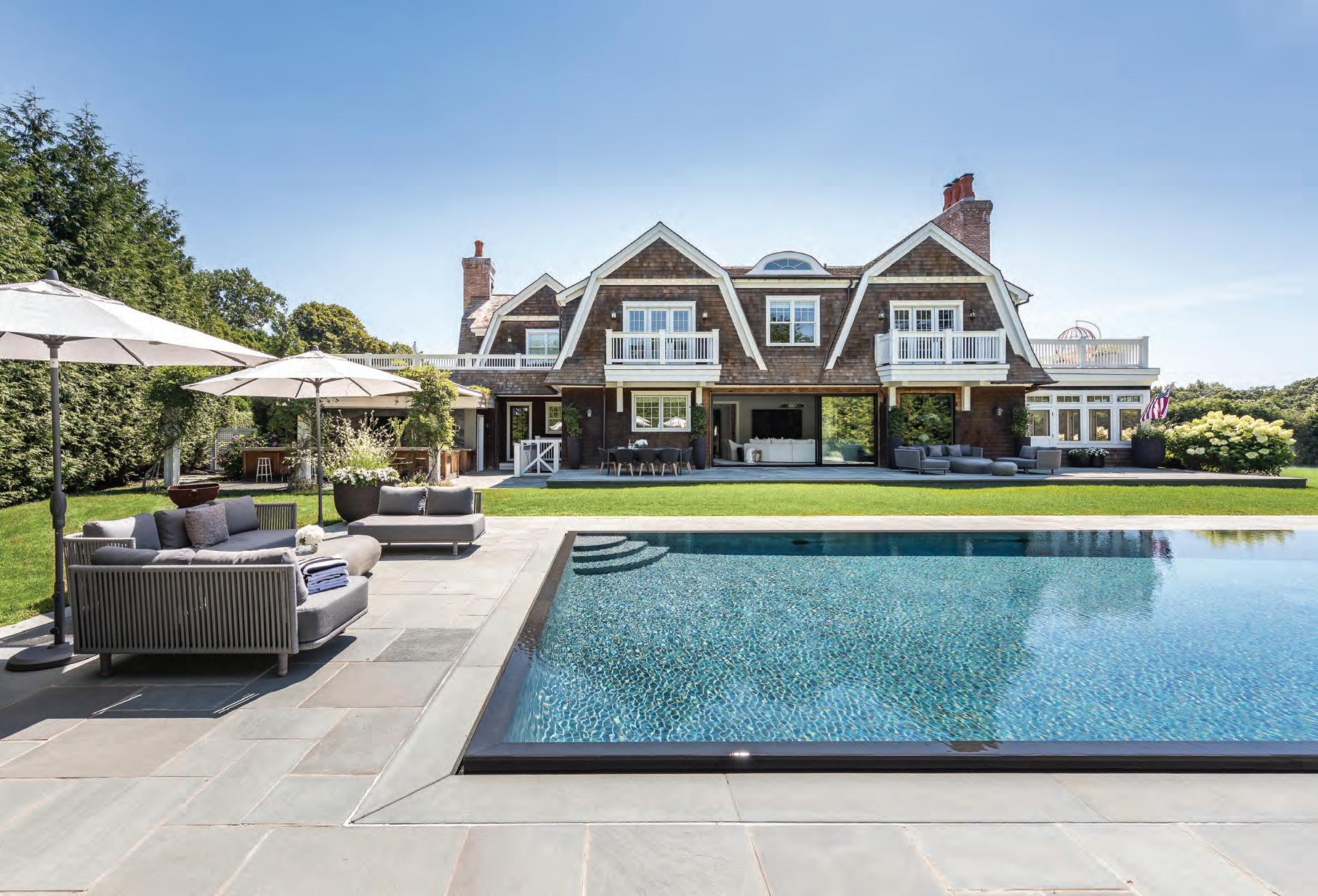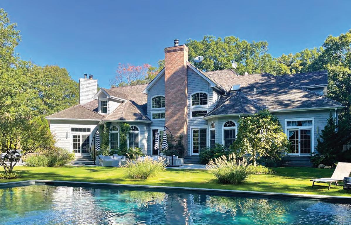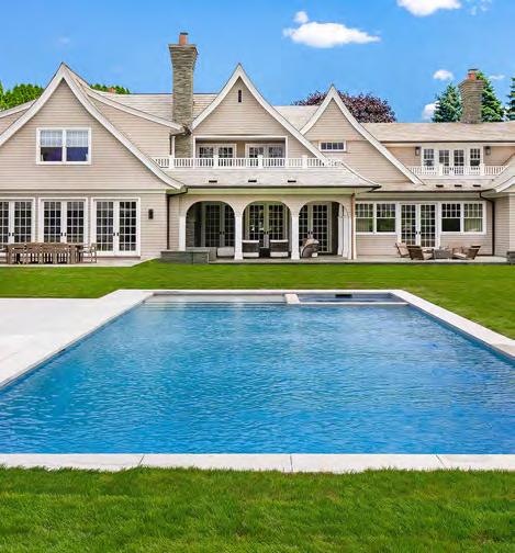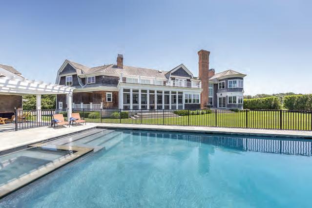 A stunning stone and cedar shingle-style house bordering a 20 acre reserve is now available for sale in Bridgehampton. Nearly 12,000 SF of living space on 3 fnished levels built with top-quality materials by a renowned Hamptons builder. Custom details are throughout this home which features rooms which face south and boast dramatic views of open felds and The Atlantic Golf Club. The foor plan is thoughtful with rooms full of volume and detailed construction amenities. Arrive through the stunning main entrance to experience the frst foor with a great room, stone freplace, dining room, large open kitchen with adjoining breakfast room all opening to the large stone terrace, library/media room with freplace, Guest suite, and family room with freplace with access to the terrace and pool area. The second foor covers over 3,600 SF and features a large primary suite with an adjoining private offce, 4 guest suites make for easily entertaining during long weekends throughout the four seasons. The lower level comprises some 4,400 SF and includes a home gym, golf simulator, billiards room, entertainment area, and playroom. Other customer features include the attached two-car garage, separate but attached caretaker’s “cottage”, detached 2-car garage, and pool house. The swimming pool is 50’ long and beautifully positioned on the property. Private viewings available by appointment. $10,950,000 WEB# 900515