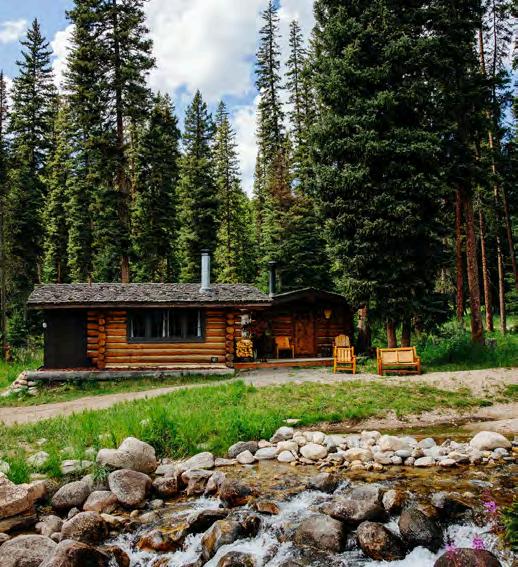 as a dining hall. Each of the 22 cabins on property is equipped with a vinyl record player, adding a nostalgic soundtrack to sunset watching from the porch.