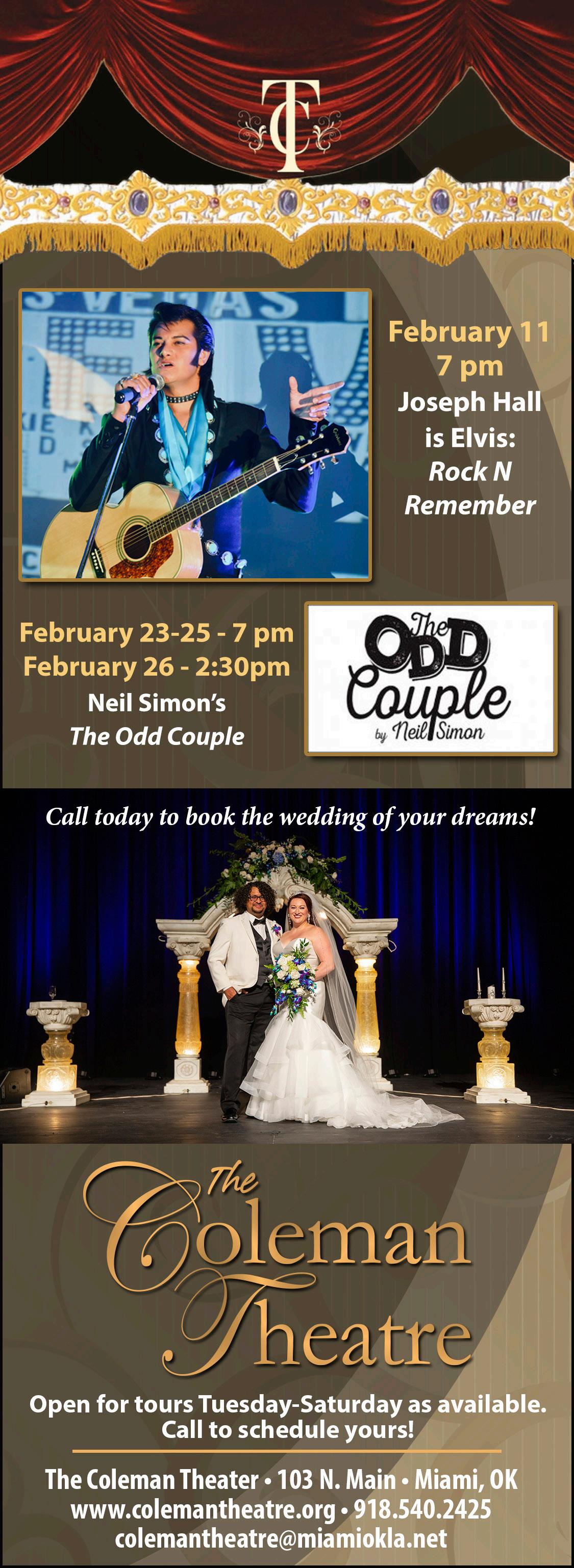 February 23-26: Pitt State Theatre: Emilia, 7:30 p.m., Saturday & Sunday 2 p.m., Bicknell Family Center for the Arts, 1711 S. Homer St. Emilia Bassano was a trailblazer 400 years ago, but her story is almost completely lost to history. Join us to see why her story continues to be important then and now. For mature audiences. Call 620.235.4714.