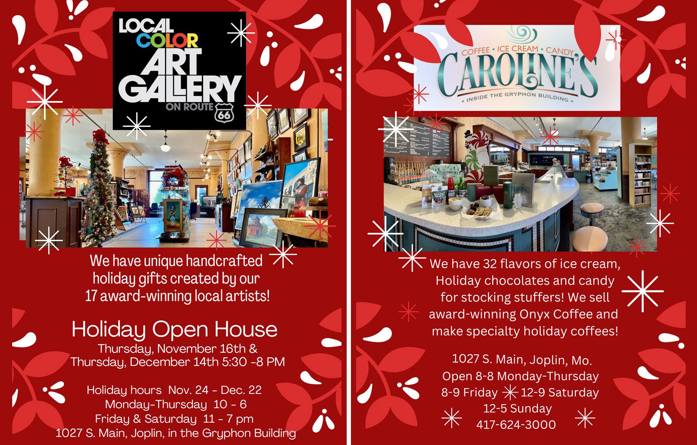 Unique gifts crafted by four-state artisans. Santa will visit on Saturday from 10 a.m.-2 p.m.
