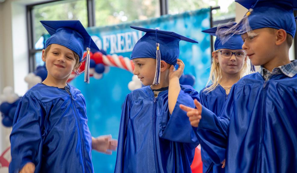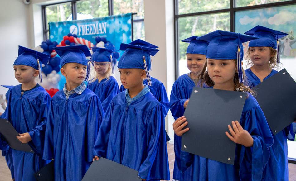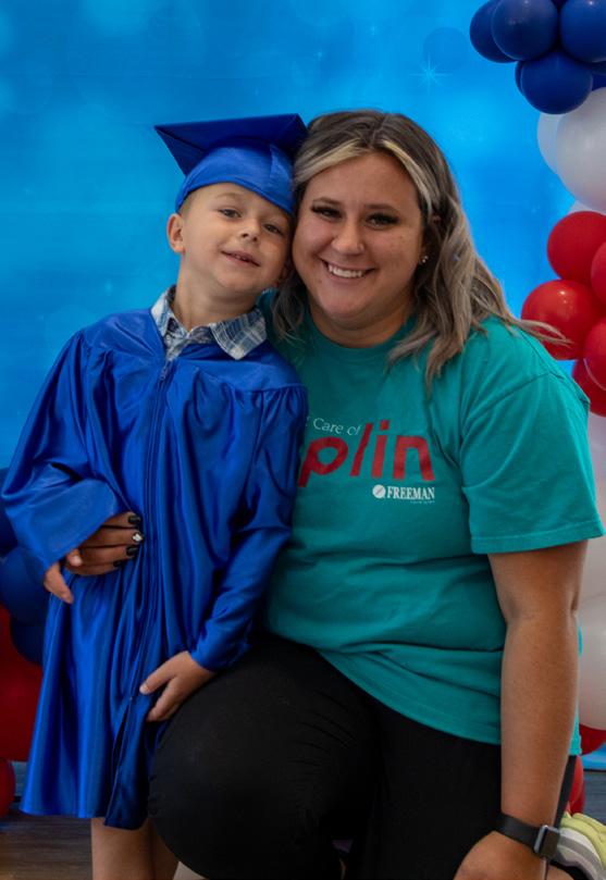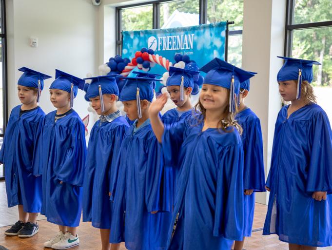 One by one, 10 graduating students from Freeman Learning Center walked across the stage Friday, July 28, receiving their diplomas from Freeman President and Chief Executive Officer Paula Baker. Each 5-year-old child was decked out in traditional cap and gown. This was the second class to graduate since the Learning Center opened to students in August 2020. The center, located at 3505 S. Indiana Ave., was specifically built to care for Freeman and Ozark Center employees’ children during the workday. More than a daycare center, it offers structured play that engages children to help them grow intellectually, emotionally and socially. The 10 graduating students are now ready to start their first day of kindergarten in the fall.