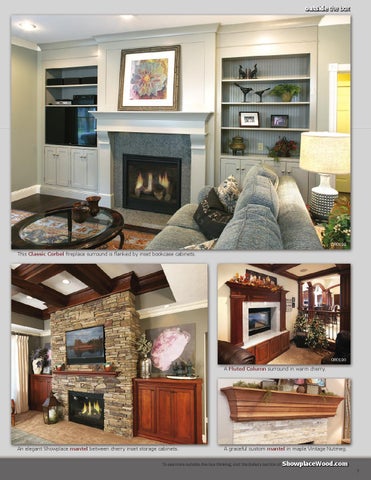 An elegant Showplace mantel between cherry inset storage cabinets.