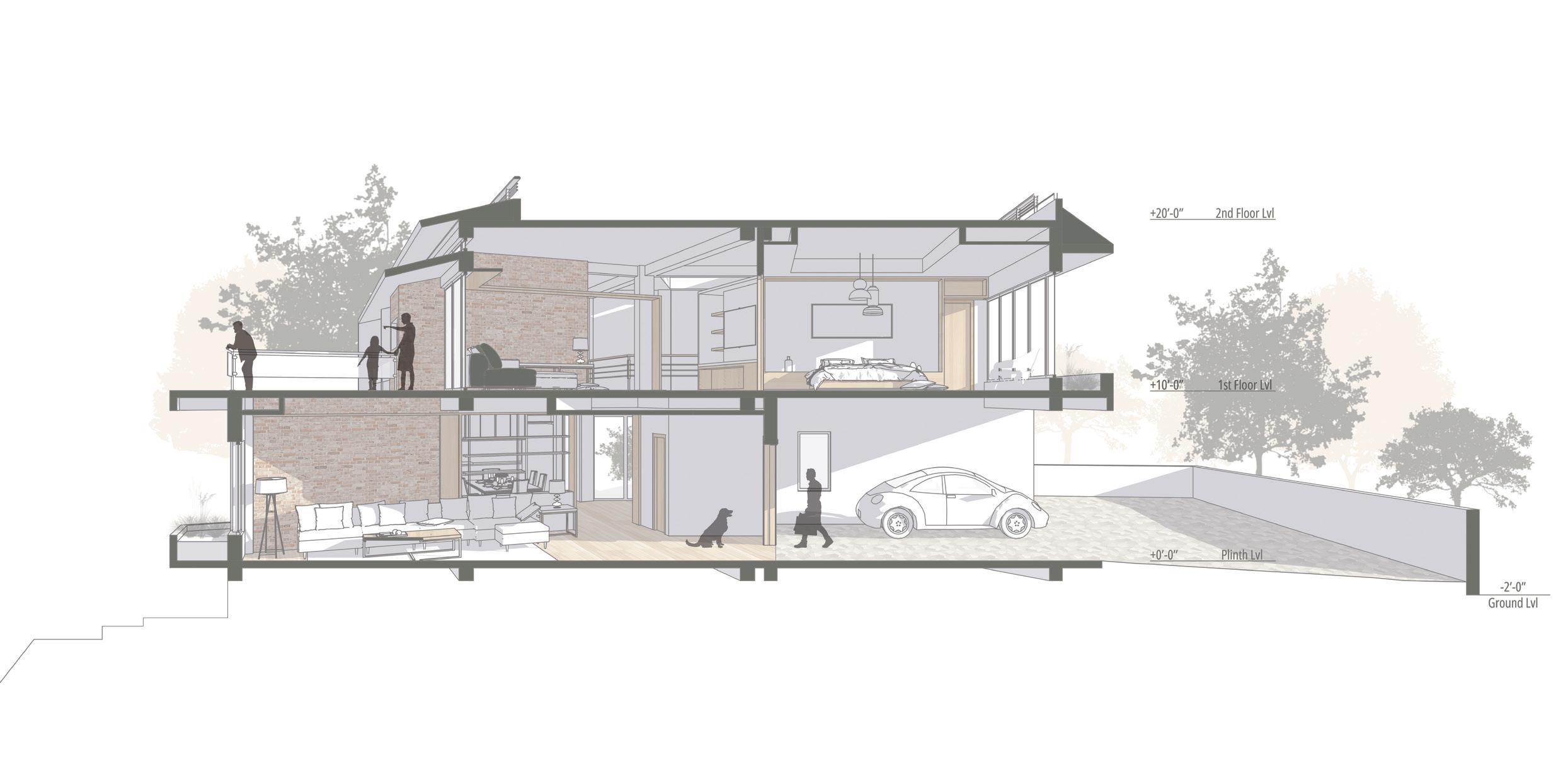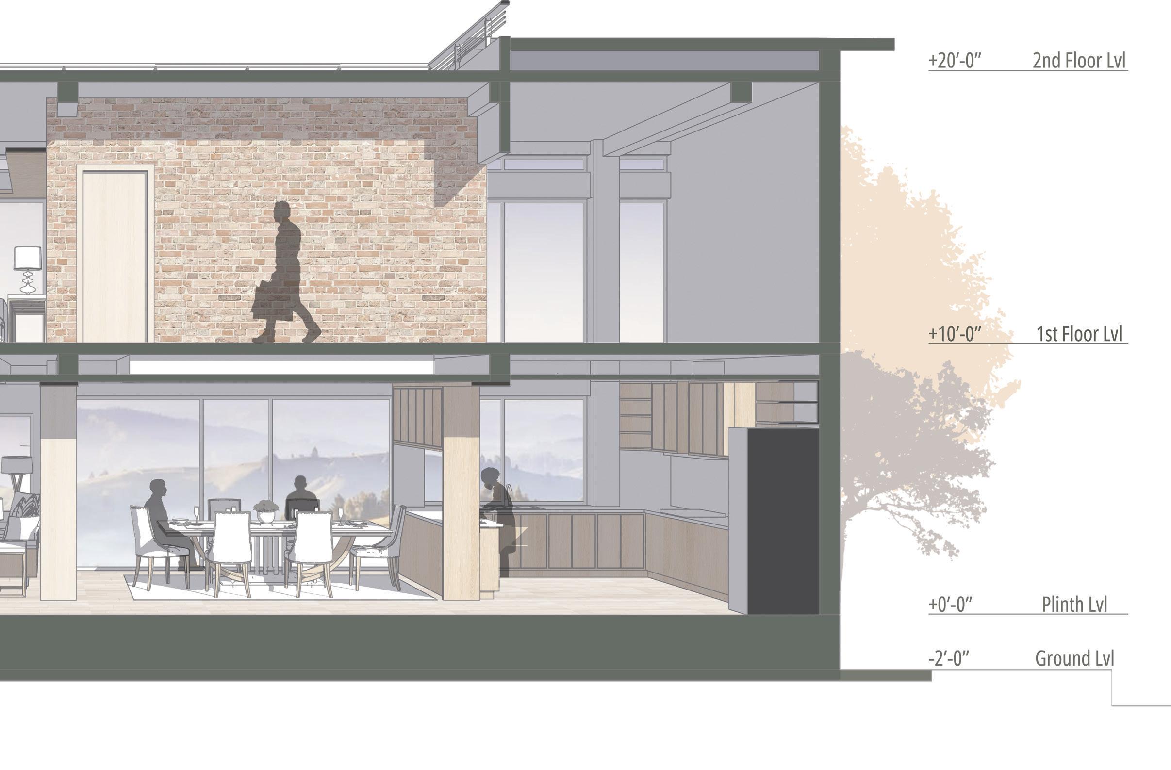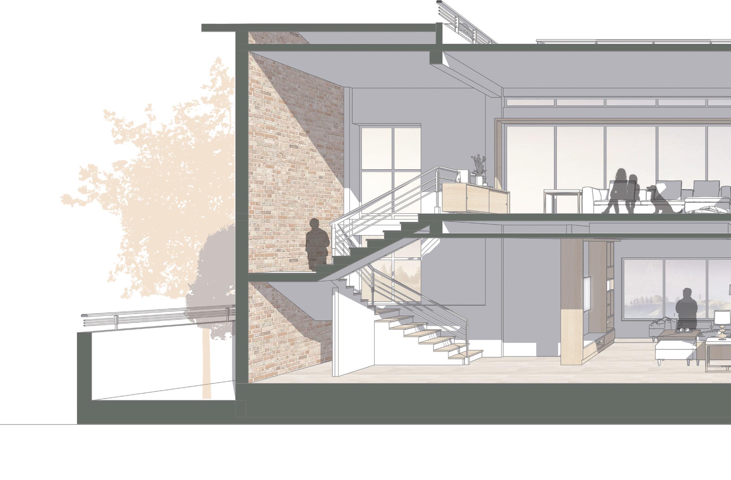 Combination of modern architecture with traditional materials like wood & brick brings new life to the spaces within.