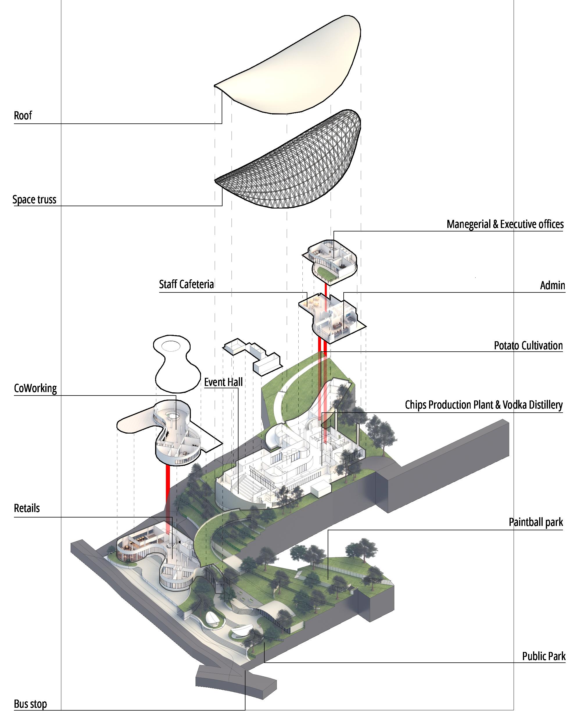 Amidst the monotony of Hattiban’s to-be concrete jungle, the Amusement Factory emerges as a beacon of change, injecting life and excitement into the urban landscape. Gone are the rigid and bland structures, replaced instead by a vibrant tapestry of amusing shapes and forms that ignite curiosity and engage the senses. Placemaking initiative transforms normal greenery into bustling hubs of activity, while a rentable platform for events becomes a focal point for community gatherings. Thrill-seekers find their fix through exhilarating activities, while self-production workshops offer a unique twist with hands-on experiences crafting potato chips and potato vodka. With the Amusement Factory leading the charge, Hattiban sheds its tiredness and dullness, blossoming into a dynamic haven of entertainment and creativity.