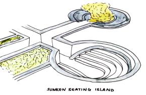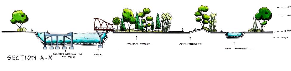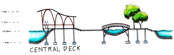 The central deck acts as the main space from which the water body within the site can be overlooked along with the otehr activities.