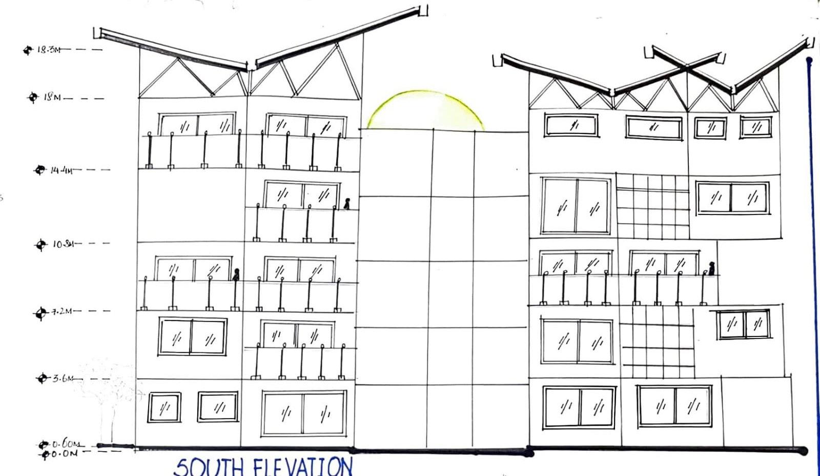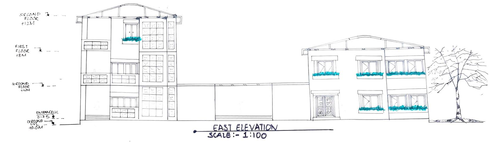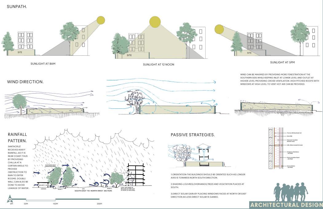 The building is designed iin accordance with the passive strategies such as orientation of the building, orientation of the windows in the wiindward direction,etc.