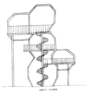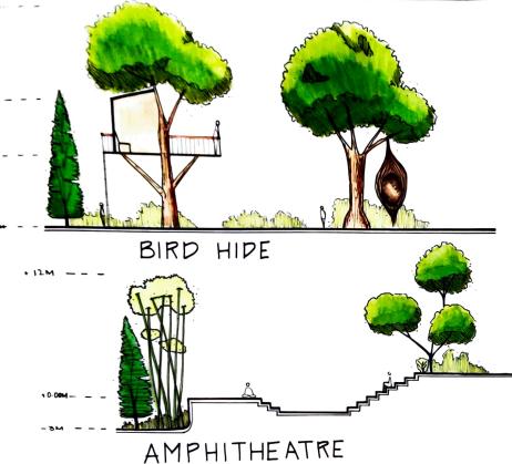 The design includes bird hide and watch tower that have a panaromic view of the site. the watch tower has different views on different floors.