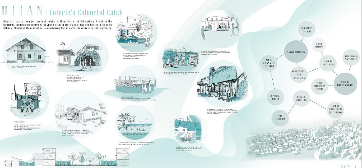 1) UTTAN:- It is a coastal town , north of Mumbai in the Thane district. the lanes ,activities,amenities and circulation of the people living there were documented and analysized. The various types of houses within the region were studied and a SWOT analysis for the same was done. This project was done by a batch of 80 students .