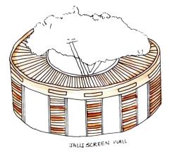 The jalli wall used is for light and ventilation. it is also used to play with shadow.