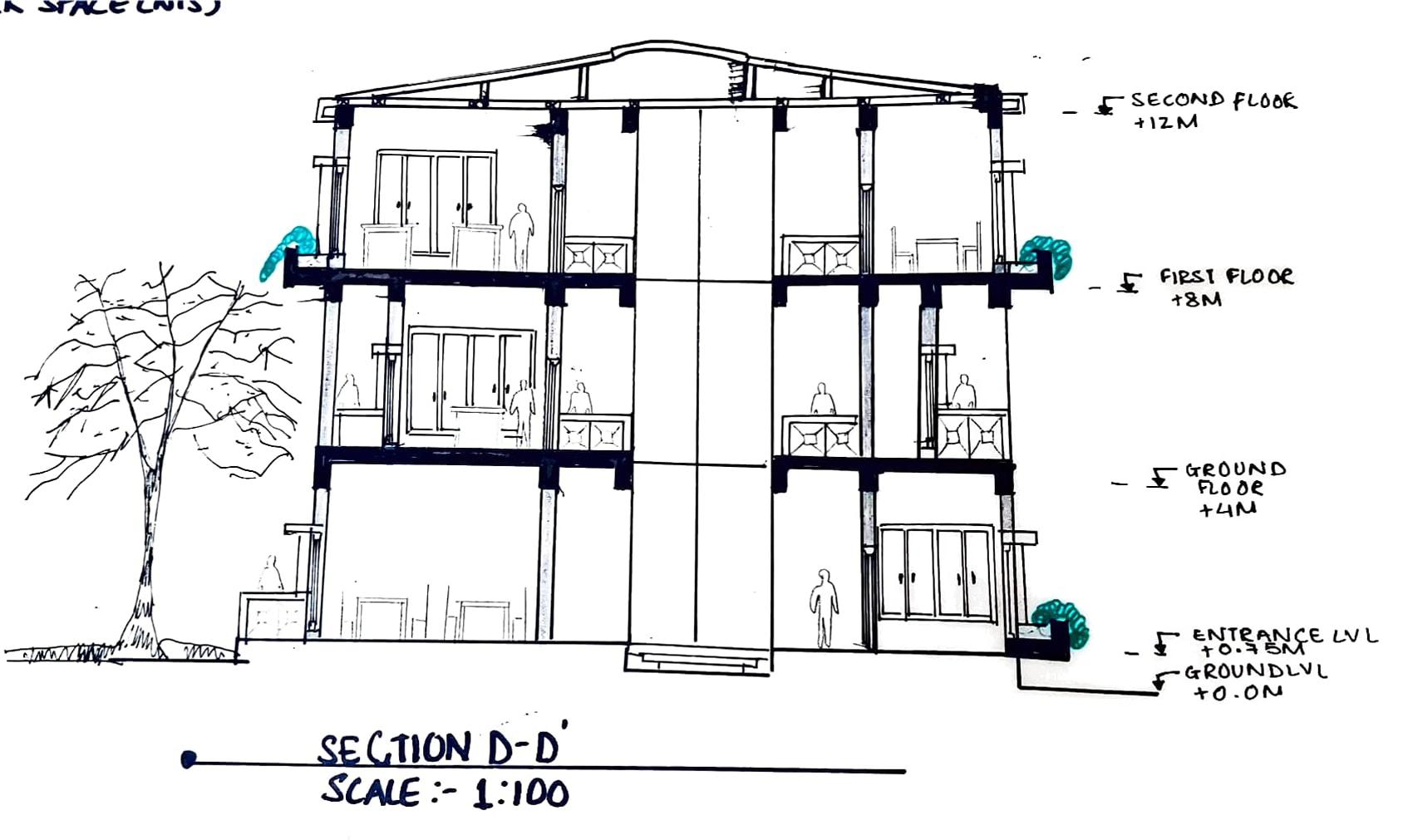 d) Induce recreational spaces seamless with the existing context BUILT UP AREA:-3200 SQ.M