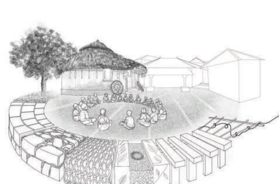 Every building has a small transition space or portico space which helps in community building as well. The common courtyard has mounds on which one can sit and enjoy the scenic view.