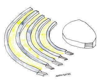 The amphitheatre is made at a slope which contains bamboo tree behind the stage , which acts as a backdrop.