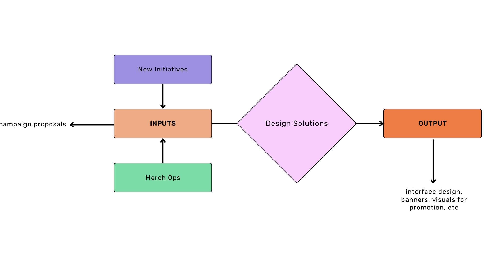 The new initiatives team and the merch ops team are responsible for submitting campaign proposals. Once these proposals are received, the Design Solutions team takes over and begins planning the execution of the campaigns.