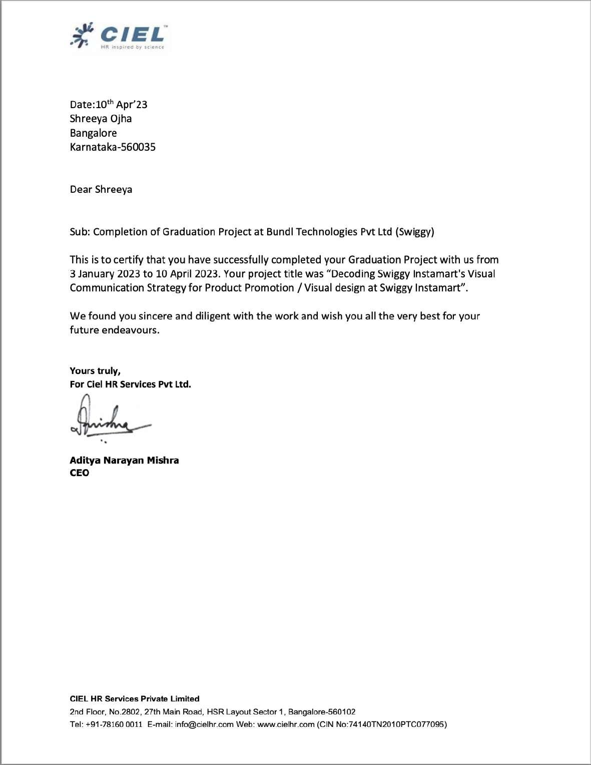 I am also deeply grateful to my industry mentor, Mr. Piyush Punj, and the entire design team at Swiggy. Their mentorship, guidance, and supervision have been critical to my learning and growth during the course of my training. Their constant feedback and support have helped me to develop my skills and gain valuable insights into the practical aspects of product design.
