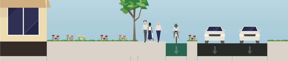 Narrow sidewalk (4ft-6ft) with landscape buffer between sidewalk and street (5ft9ft)