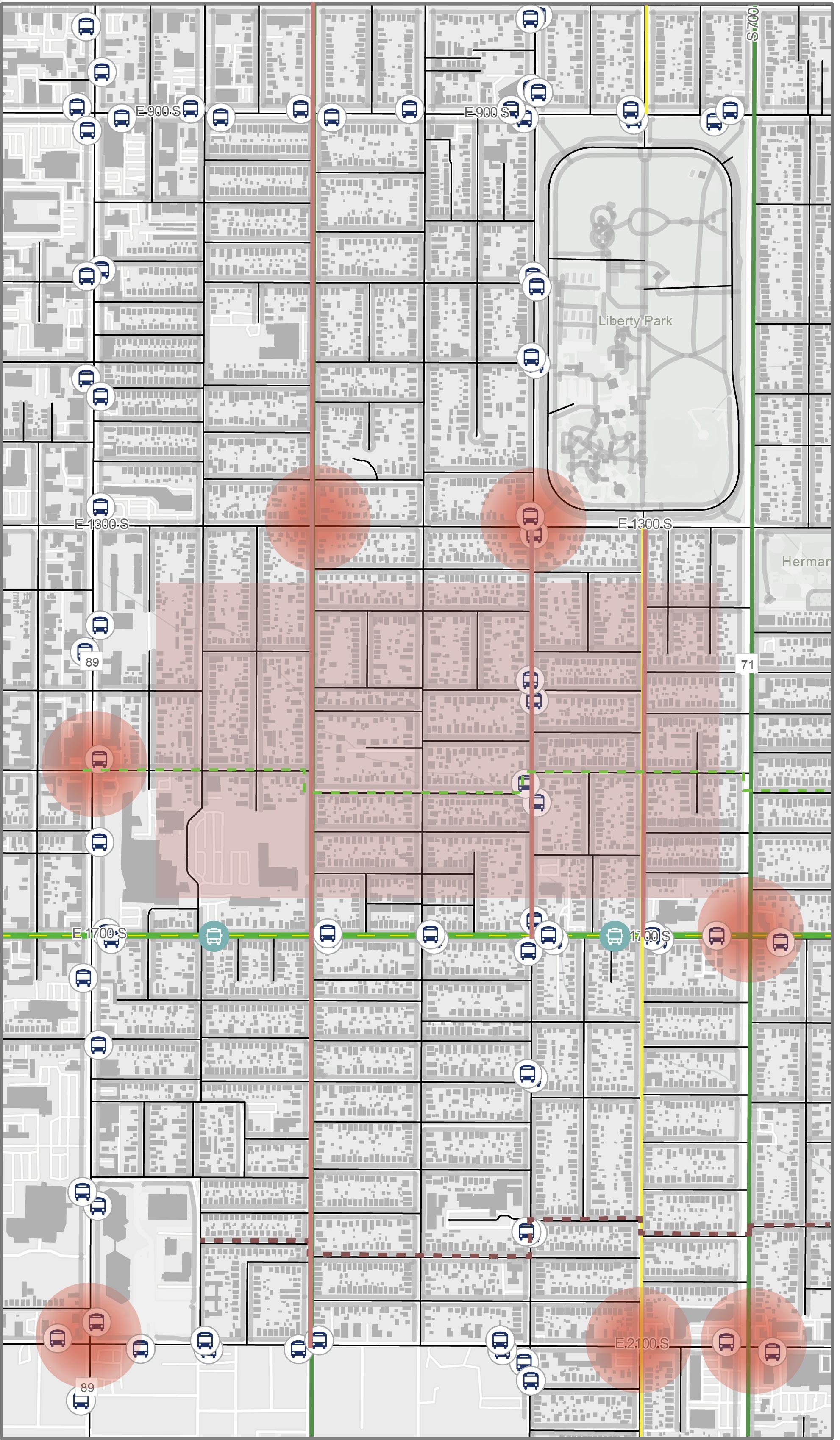 The existing conditions analysis looks at all modes of transportation and the connections that exist internally in Liberty Wells and regionally in Salt Lake City. This includes active transportation, transit, and vehicular infrastructure, as well as completeness, connectivity, safety, attractiveness, and efficiency.The public input analysis bases its data analysis on information collected from a public survey and a series of approximately 10 transportation focused interviews.
